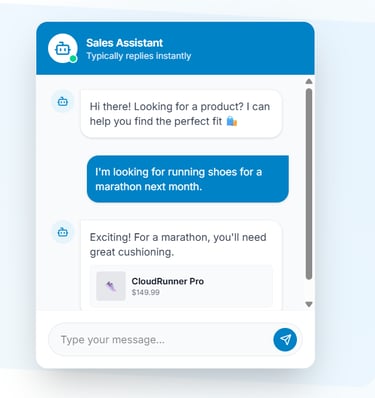 Your AI assistant engages every visitor, understands their needs, and recommends the right products, automatically.